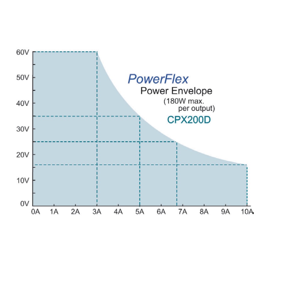 - Лінійний регулятор CPX200DP забезпечує реакцію на перехідні процеси в десять разів швидшу, ніж у звичайних джерел живлення з імпульсним режимом