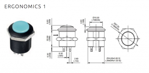 Серія FP 24 MM SERIES Актуатор круглий, випуклий Монтажний діаметр 24 мм Макс. струм 200 мА Підсвітка Червона Тип контактів під пайку Клас захисту IP69K Конф. контактів OFF-ON Кількість полюсів 1 Тип перемикання з фіксацією Кількість позицій 2 Ном. напруга 12 В пост. струму Ном. струм 200 мА Колір актуатора червоний Матеріал актуатора PA12 Матеріал корпусу PA46 Матеріал контактів срібло вкрите золотом -