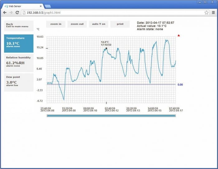 Web sensor - remote thermometer hygrometer with Ethernet interface. Weather sensor for environment monitoring