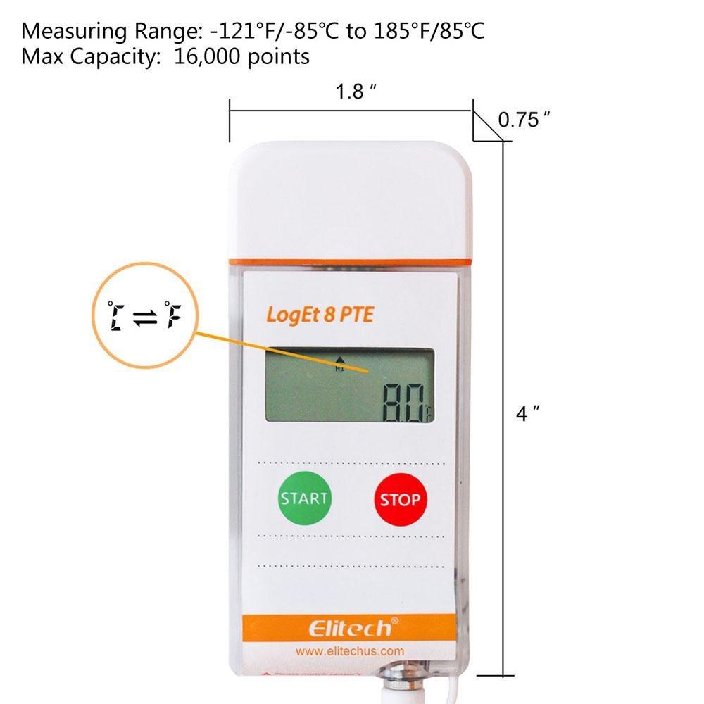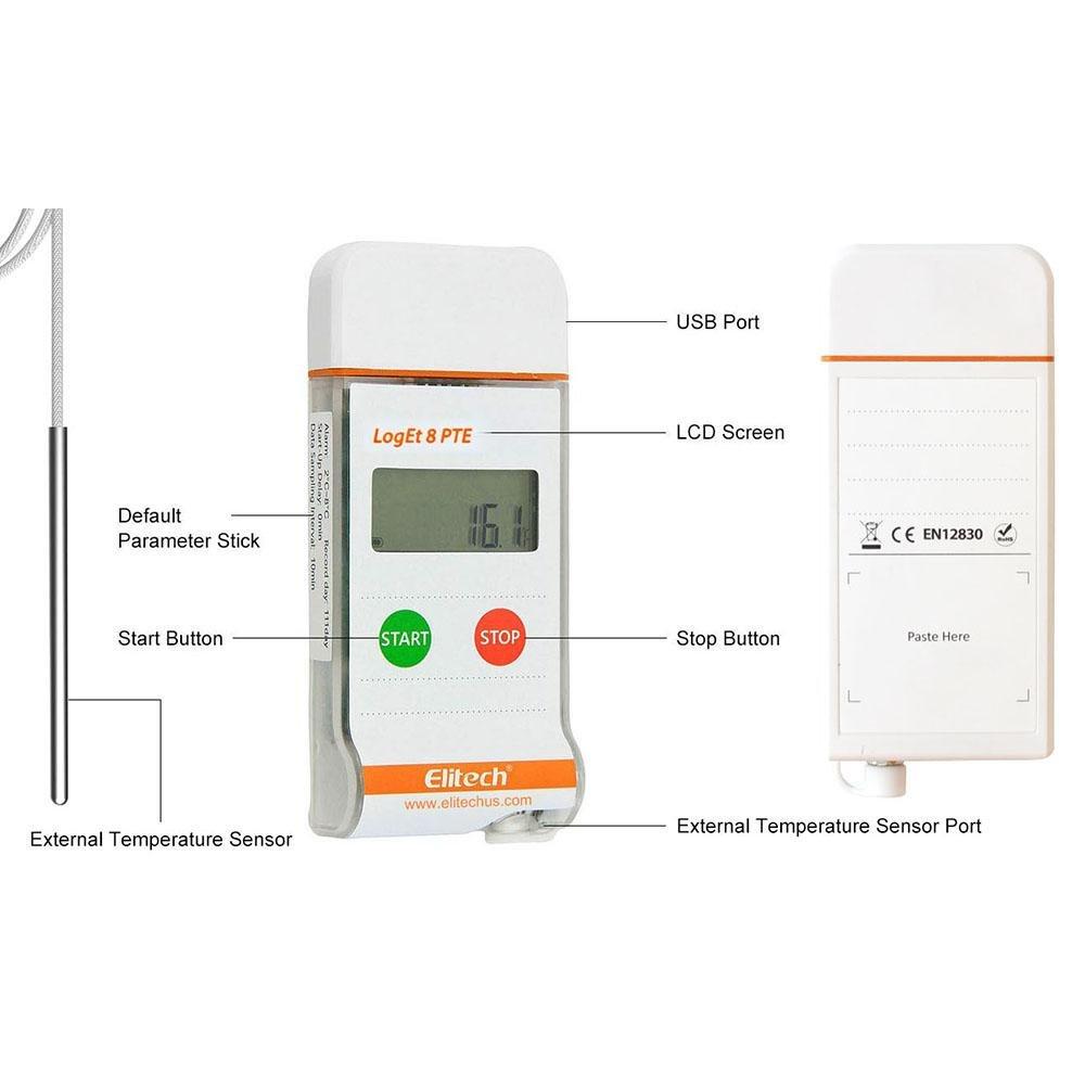 Elitech LogEt 8 PTE реєстратор температури, -85 до +150 °C, Multi-Use, PDF, USB, LCD, IP65