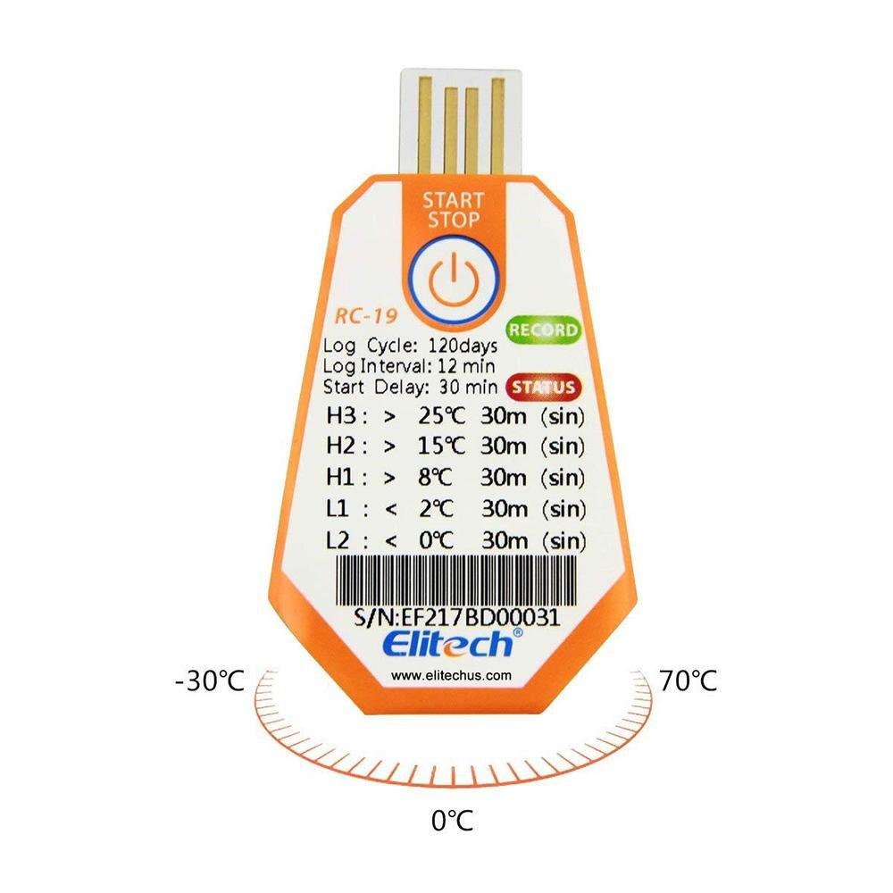 Elitech RC-19 реєстратор температури, -30 до +70 °C, Single-use, USB, PDF, IP67