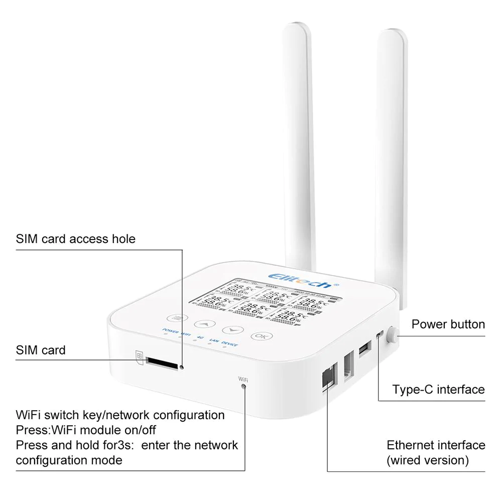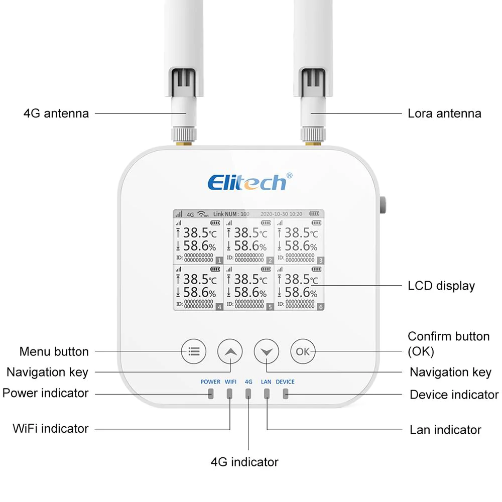 Elitech RCW-3000 базова станція системи моніторингу температури та вологості LoraWAN, Wi-Fi, 4G