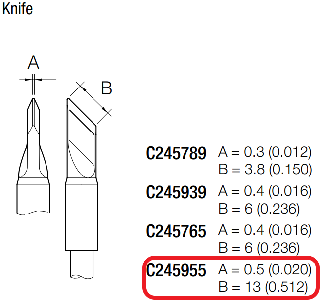 Soldering tip, Cartridge Knife 13.0 x 0.5