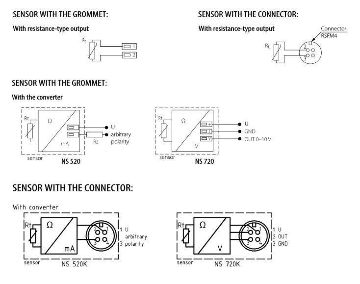 Датчики призначені для роботи в хімічно неагресивному середовищі.Модифікації:- Можливість встановлення двох чутливих елементів;