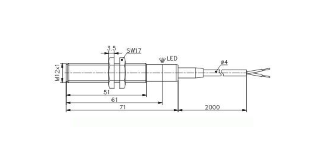 Sensit PSI 126 360 індуктивний датчик наближення, 2,5mm, NC, 2-wire, M12, 20 Hz, 20 - 250 VAC, IP 68, 2m