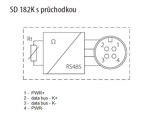 Датчик температури SD 182 з головкою підключення з нержавіючої сталі та цифровим виходом RS 485 / MODBUS, призначений для контактного вимірювання температури рідких і газоподібних речовин, може використовуватись для вимірювання температури в вентиляційних каналах і трубопроводах. Може використовуватись в харчовій промисловості. Діапазон вимірювання від -50 до 150°C. Ступінь захисту IP65.