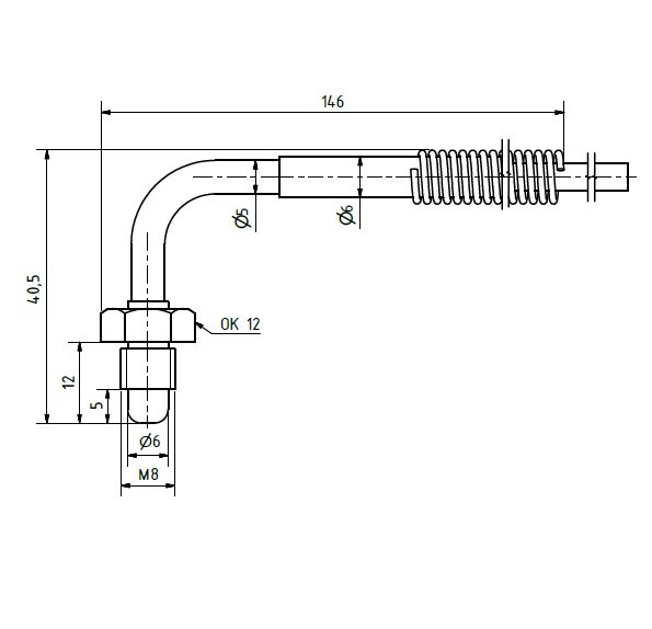 Контактний, датчик температури під прямим кутом з зовнішньою різьбою від -50 °C до 350 °C, діаметр вимірювальної частини 6 мм, з нержавіючої сталі, Sensit TG 50Right-angle temperature sensor