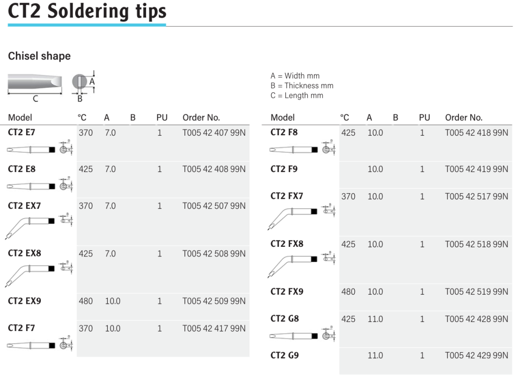 Magnastat Так Тип жал Паяльні жала Форма Клиноподібна Серія CT Використовується з W 201 Ширина, мм 11 -