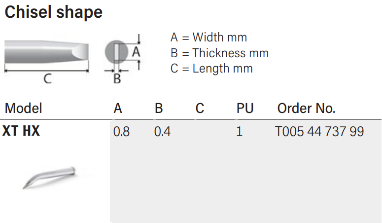 Weller T0054473799 паяльне жало XT HX, bent chisel, 0,8 x 0,4 mm