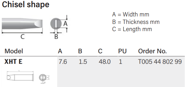 Weller T0054480299 паяльне жало XHT E, chisel, 7,6 x 1,5 mm
